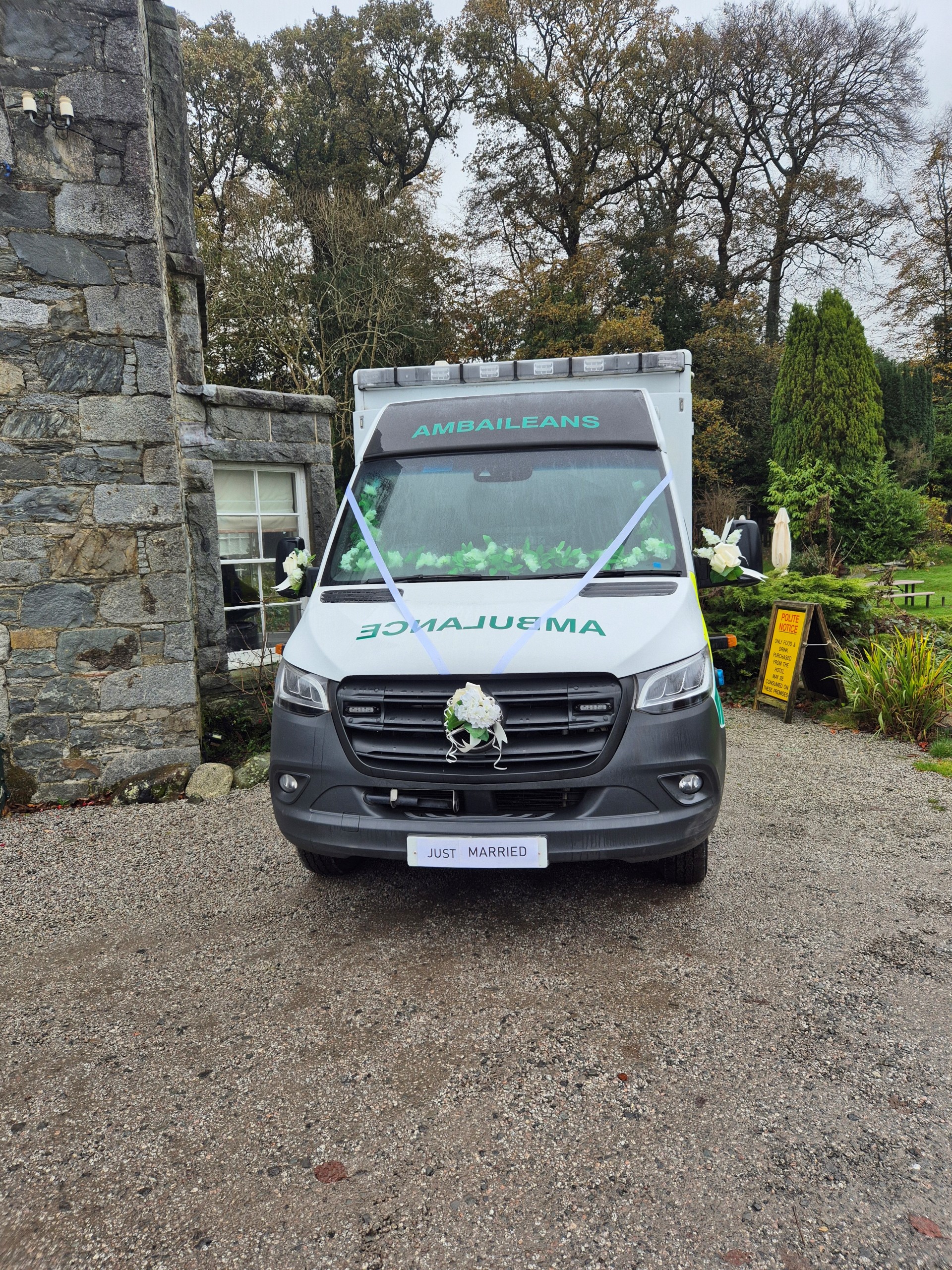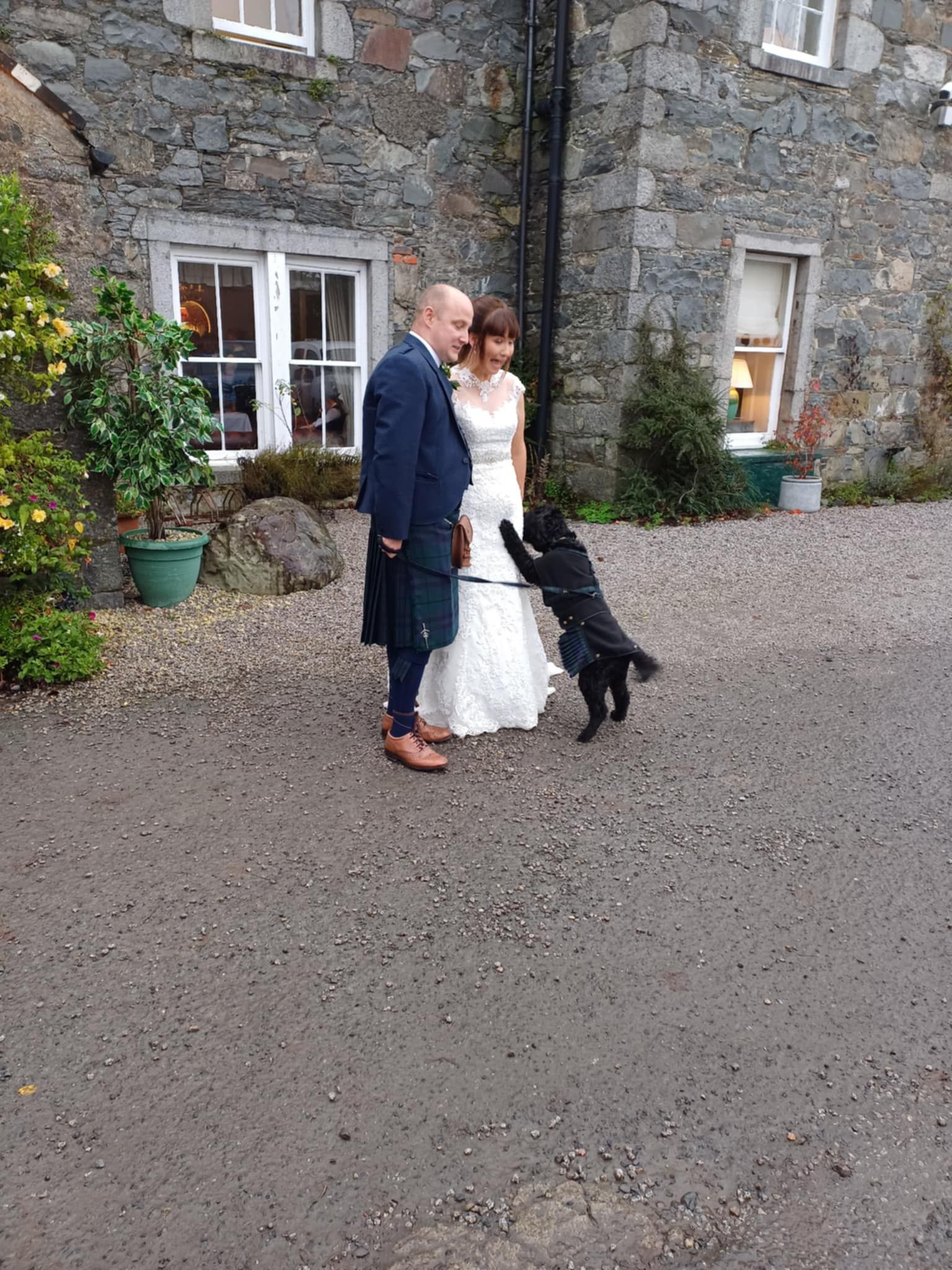 They were joined on the happy day by all their family and friends and also Archie, the couple’s cockapoo, who was appropriately attired for a Scottish wedding. The couple were also able to make use of a non-operational ambulance provided as a backdrop.