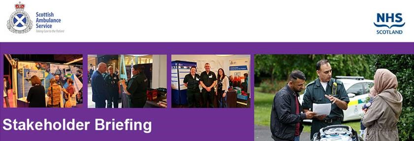 Welcome to the latest edition of the Scottish Ambulance Service’s Stakeholder Briefing. This briefing contains an overview of the latest news from the service. Please contact us, replying to this email address, if you have any comments or suggestions.