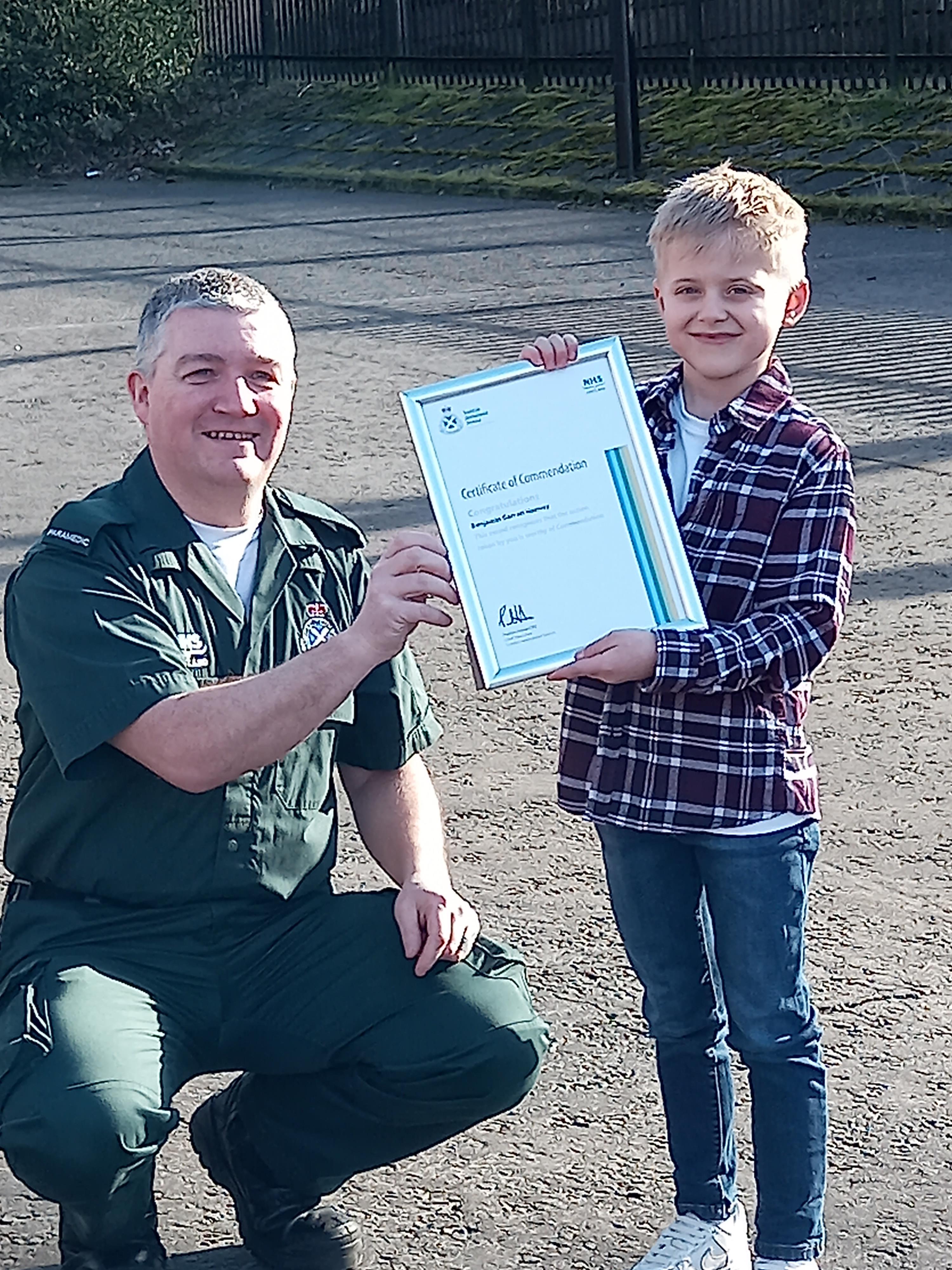 A six year old has been rewarded with a bravery certificate from the Scottish Ambulance Service for calling 999 for his mum during an emergency.